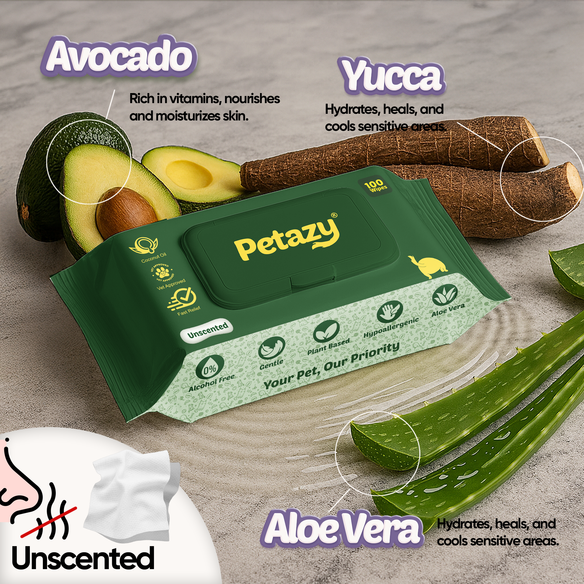 Keep your pet clean and comfortable with Petazy's Unscented pet wipes. Made with natural and organic ingredients, these hypoallergenic wipes are not only soothing, but also effectively cleanse your furry friend's whole body. With 100 wipes in each pack, you'll have plenty to keep your pet fresh and healthy.
